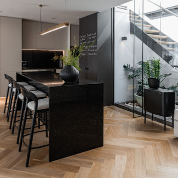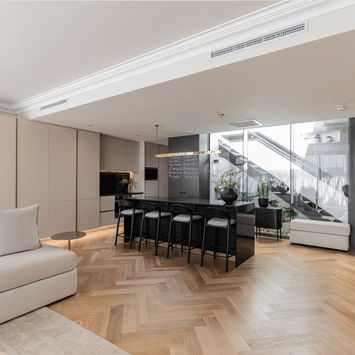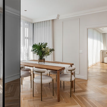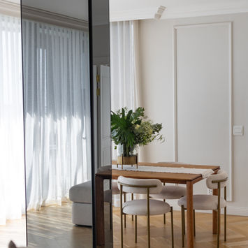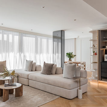 Nestled in the vibrant coastal suburb of Sea Point, Cape Town, this full-scale apartment renovation reimagines modern living through the elegance of classic French interiors. The project encompassed a complete transformation of the bathrooms, kitchen, living room and bedrooms, along with full furnishing and styling. Inspired by Parisian refinement, the design features exquisite Versailles-pattern timber flooring, adding timeless character throughout the living spaces. The bathrooms were elevated with a luxurious blend of marble and limestone, creating serene, spa-like retreats. In the kitchen, marble surfaces and warm oak cabinetry strike a balance between sophistication and natural texture.